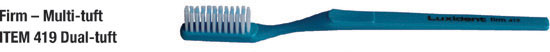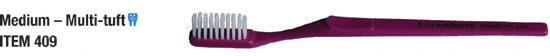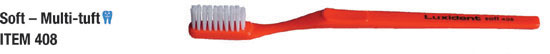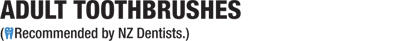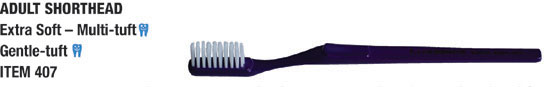 | | A very popular brush with the dental profession and the choice of the University of Otago Dental School. This is an appropriate brush for those wearing orthodontic appliances or dentures, in that it is ideally suited for massaging the gums. It also meets the requirements of all who prefer a soft gentle brush. | | | The brush many New Zealand dentists would recommend – a soft multi-tuft brush removes bacterial plaque more effectively. | | This brush is also popular among the dentists who recommend to their patients a medium brush and for those who prefer a brush a little firmer than the Soft Multi-tuft 408. | | Angled tufts probe readily between the teeth where decay often starts – once people use this design many become habitual users because of its effective interdental cleaning action. | | Favoured by those who prefer a full size firm brush – soft white outer bristles for cleaning the gum line – firm blue centre bristles for cleaning tooth enamel. | | For those who prefer a hard longhead brush – favoured by smokers. Vee-tufting gives the tuft more free movement allowing them to flex more when too much pressure is used. Hard brushes are generally not recommended by the dental profession. |